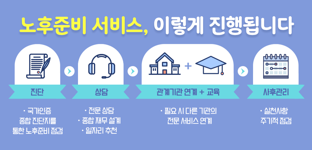 노후준비서비스는 다음과 같은 단계로 진행됩니다: