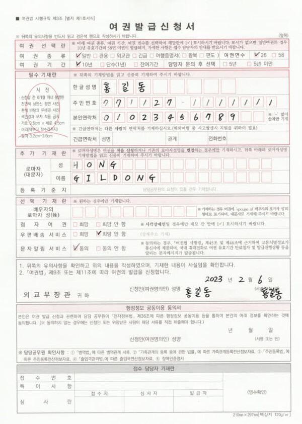 - 여권 발급 신청서, 여권용 사진, 신분증이 필요합니다.