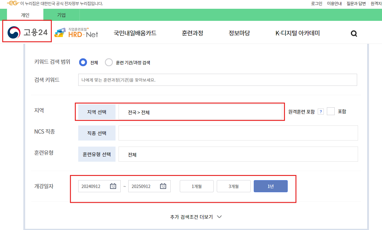• 훈련 과정은 고용24 웹사이트에서 다양한 훈련 과정을 확인할 수 있습니다.